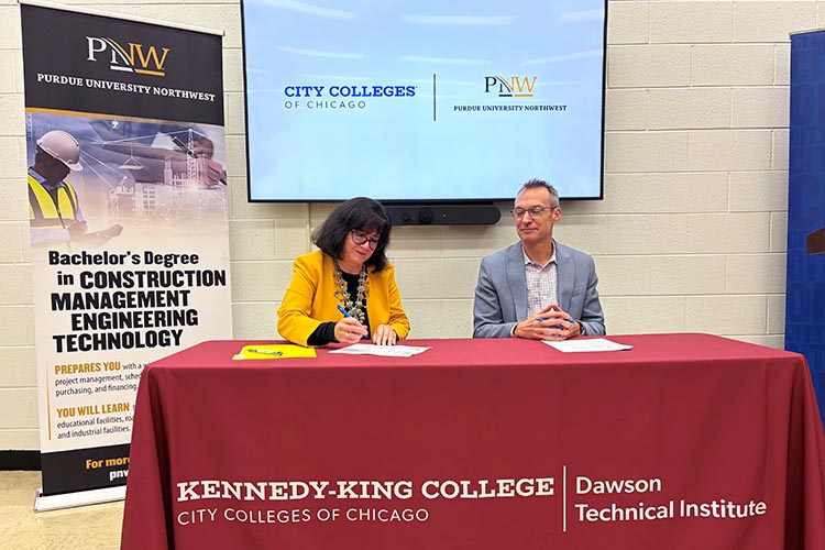 “We are excited to formally articulate this innovative collaboration between Kennedy-King College and Purdue University Northwest,” said Marie T. Mora, provost and vice chancellor for Academic Affairs at PNW. “Through the streamlined transfer of eligible credit hours and access to early academic support services as well as the potential to receive scholarship support, students should be able to graduate with less debt in a seamless manner and enter successful careers in construction management and related fields. We are also looking forward to future collaborations with City Colleges of Chicago to expand our partnership to other academic programs across CCC.”