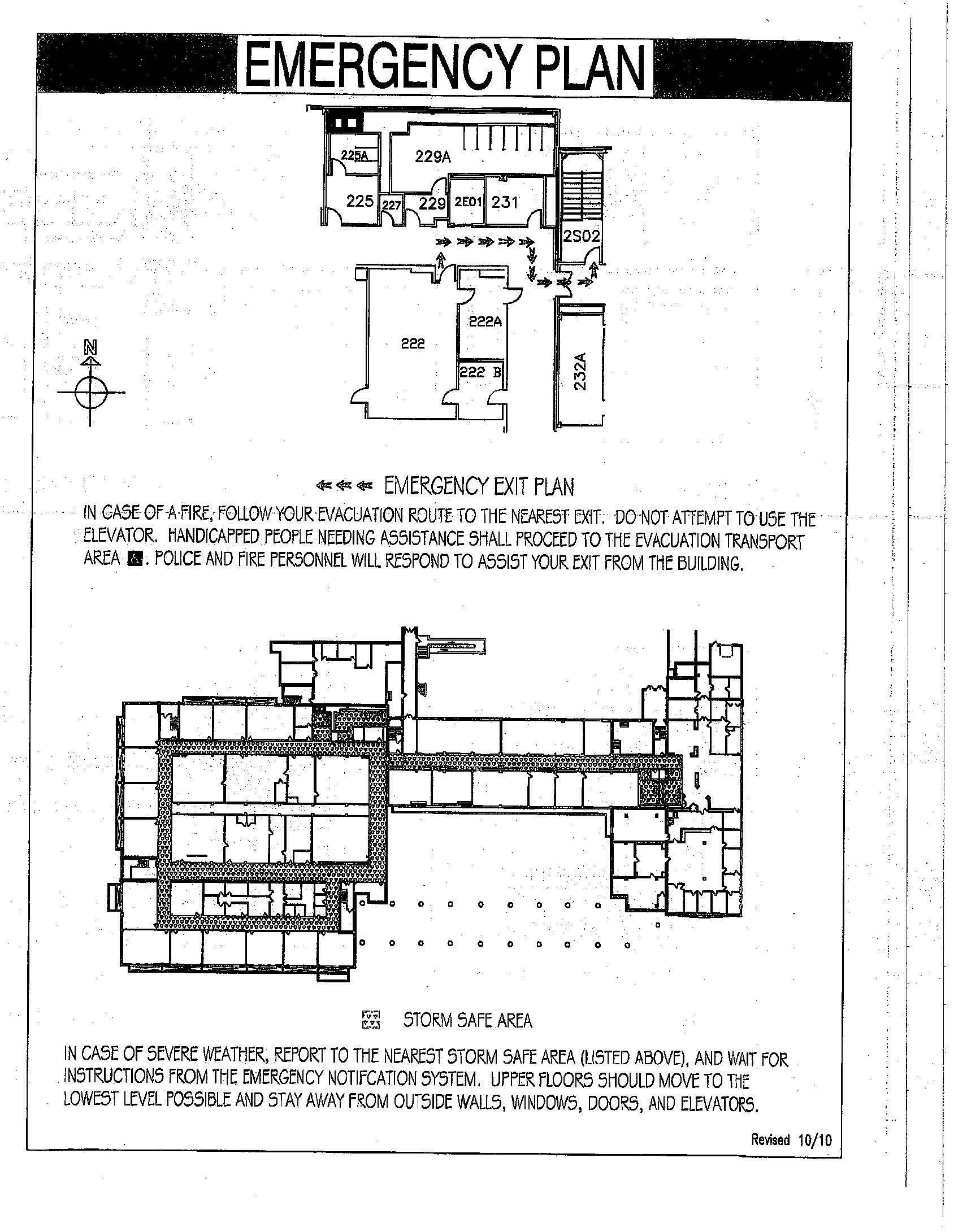 Evacuation Emergency Assembly Areas (fire alarm): Southeast side of Building in Founder’s Plaza next to Emergency Blue Light.