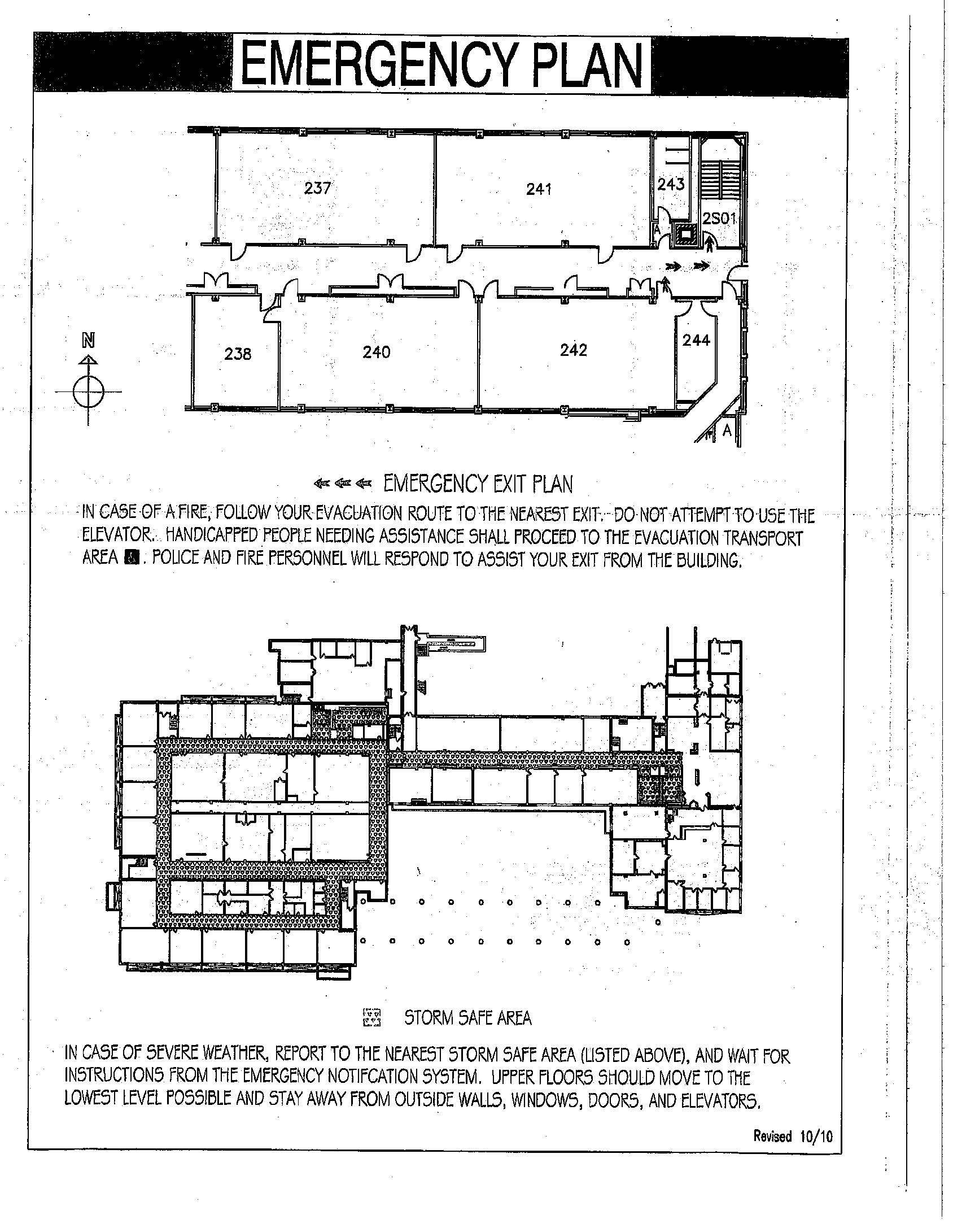 In case of a fire, follow your evacuation route to the nearest exit. Do not attempt to use the elevator. Handicapped people shall proceed to the handicapped ramp to exit the building.